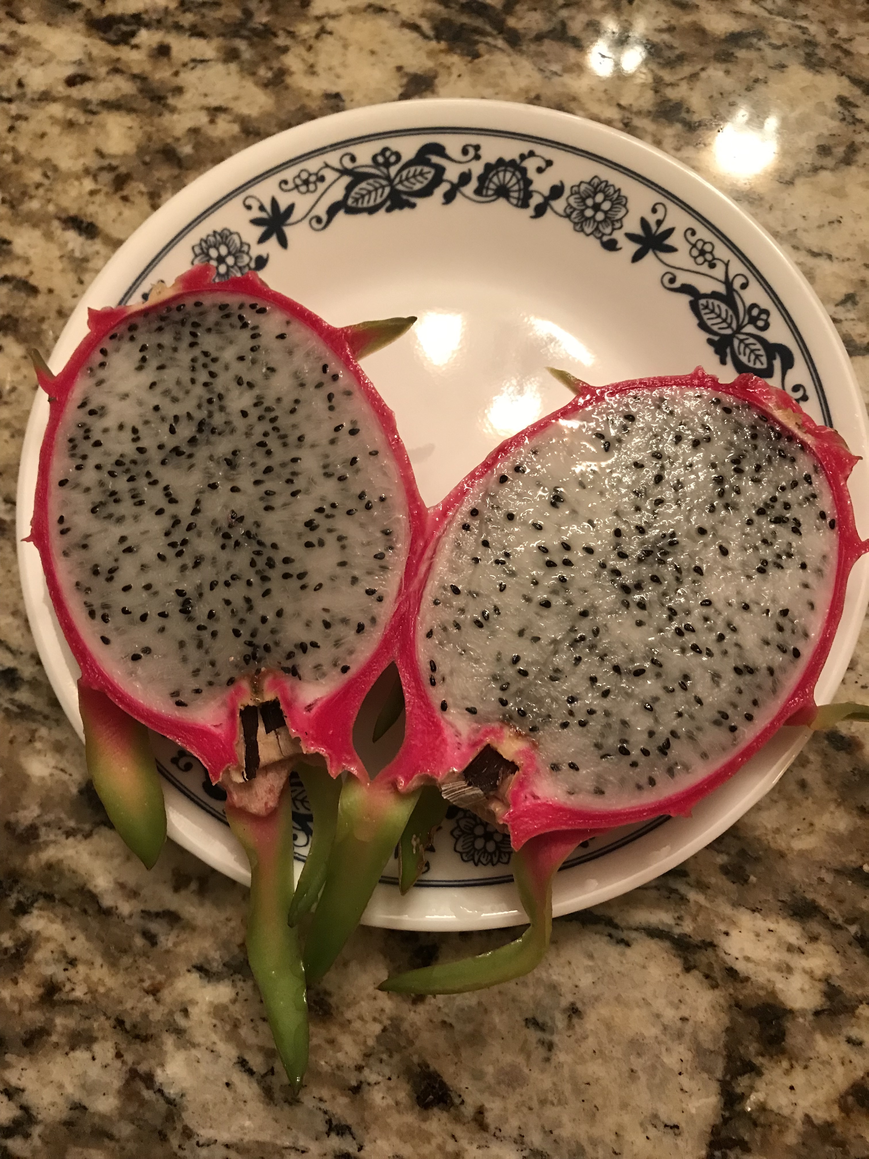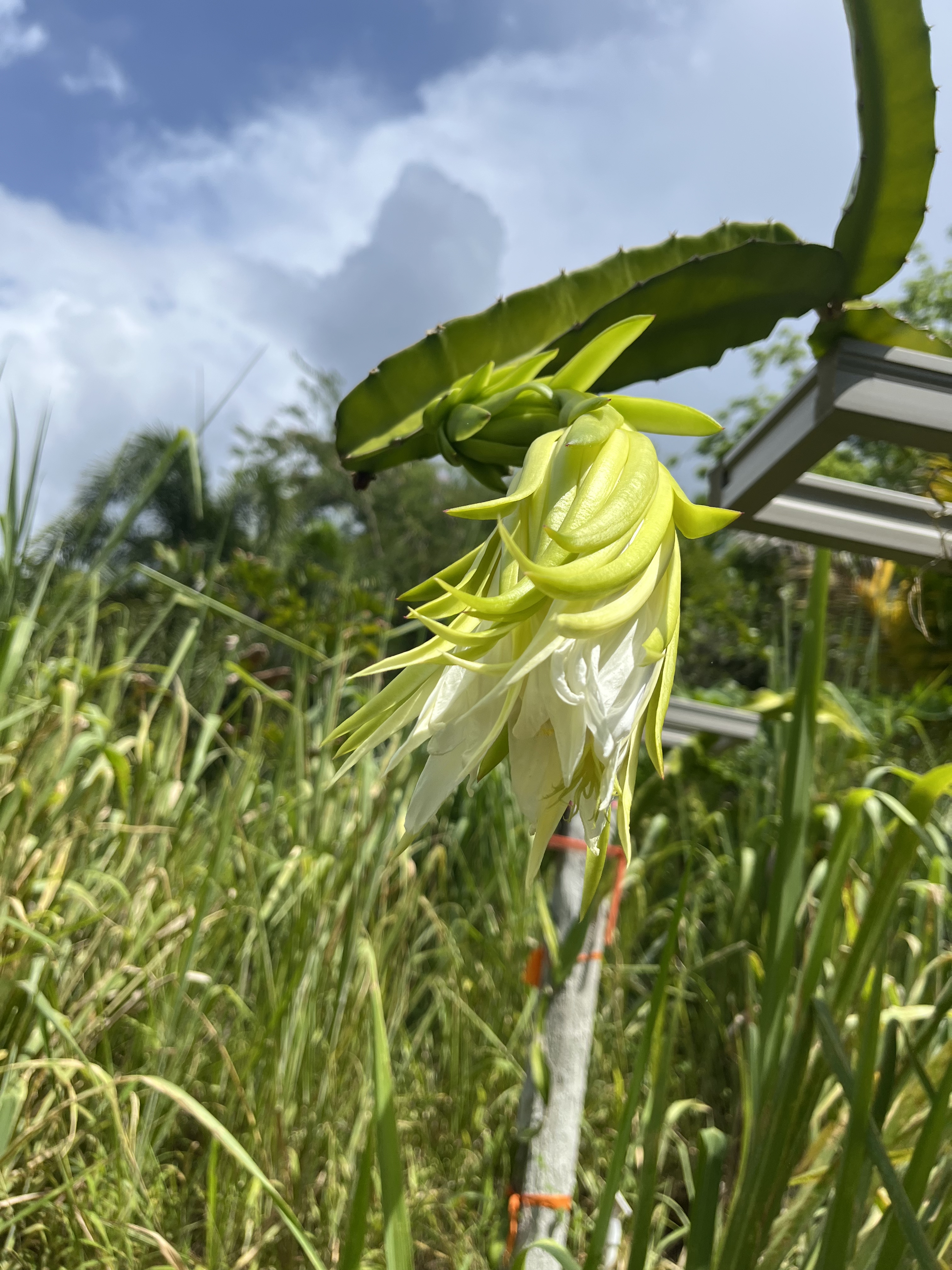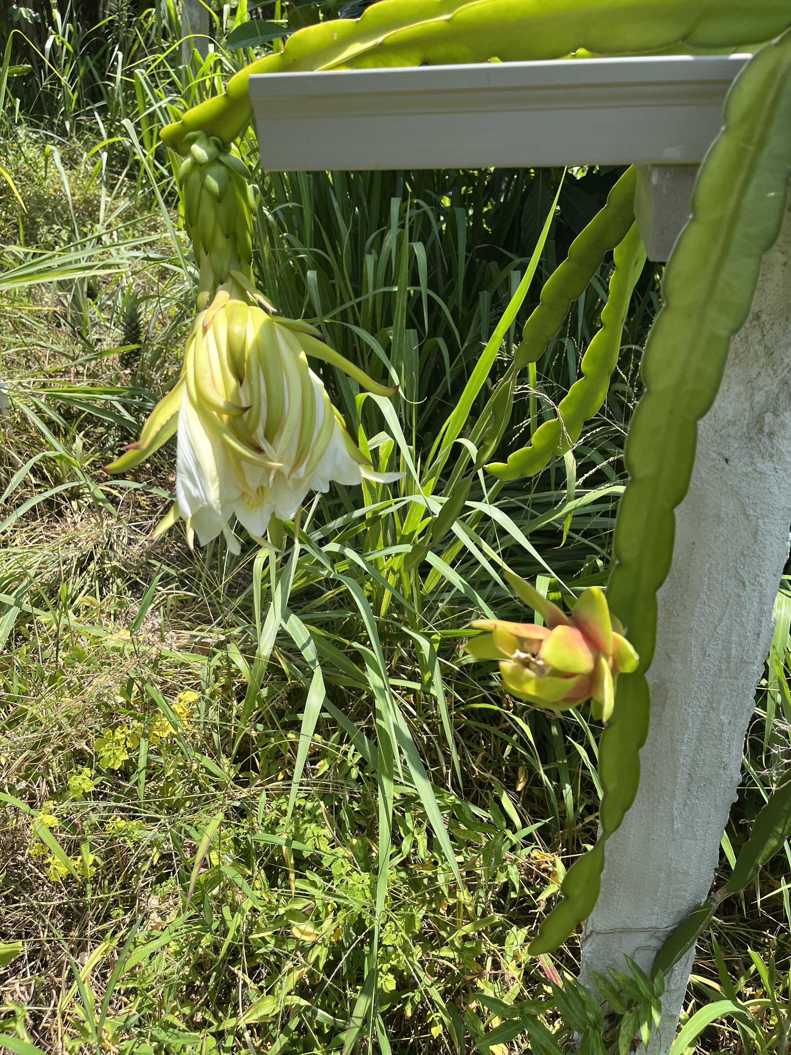 Vietnamese Jaina (Hylocereus undatus) Also known as Vietnamese giant white. Fruits can weigh 1-2 lbs. Self fertile. Flowers in July.