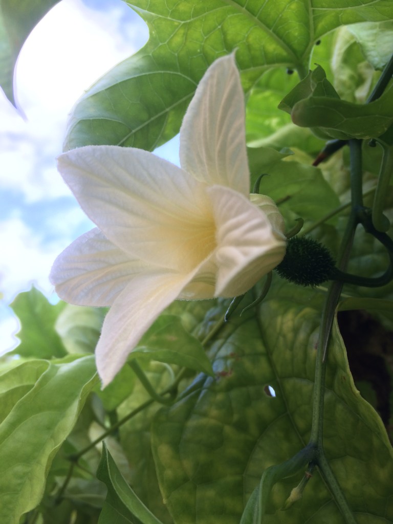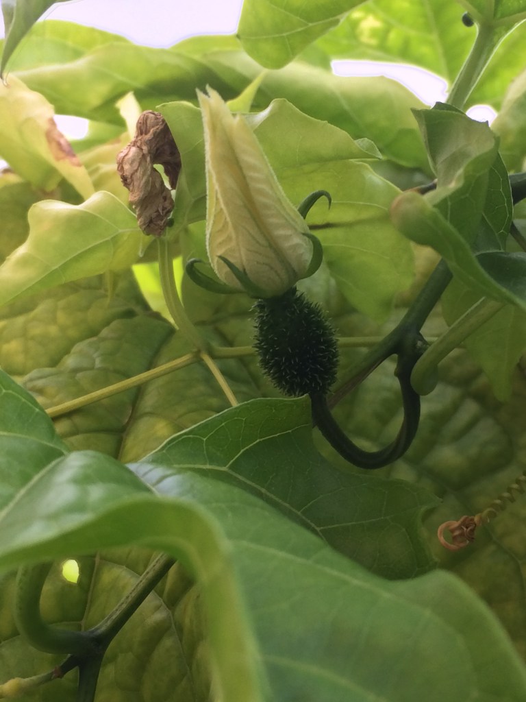 Gac (Momordica cochinchinensis) Gấc. Originated in Vietnam. vines are either male or female. Flowers last for one day. Flowers in October/November, fruit is ripe in February.
