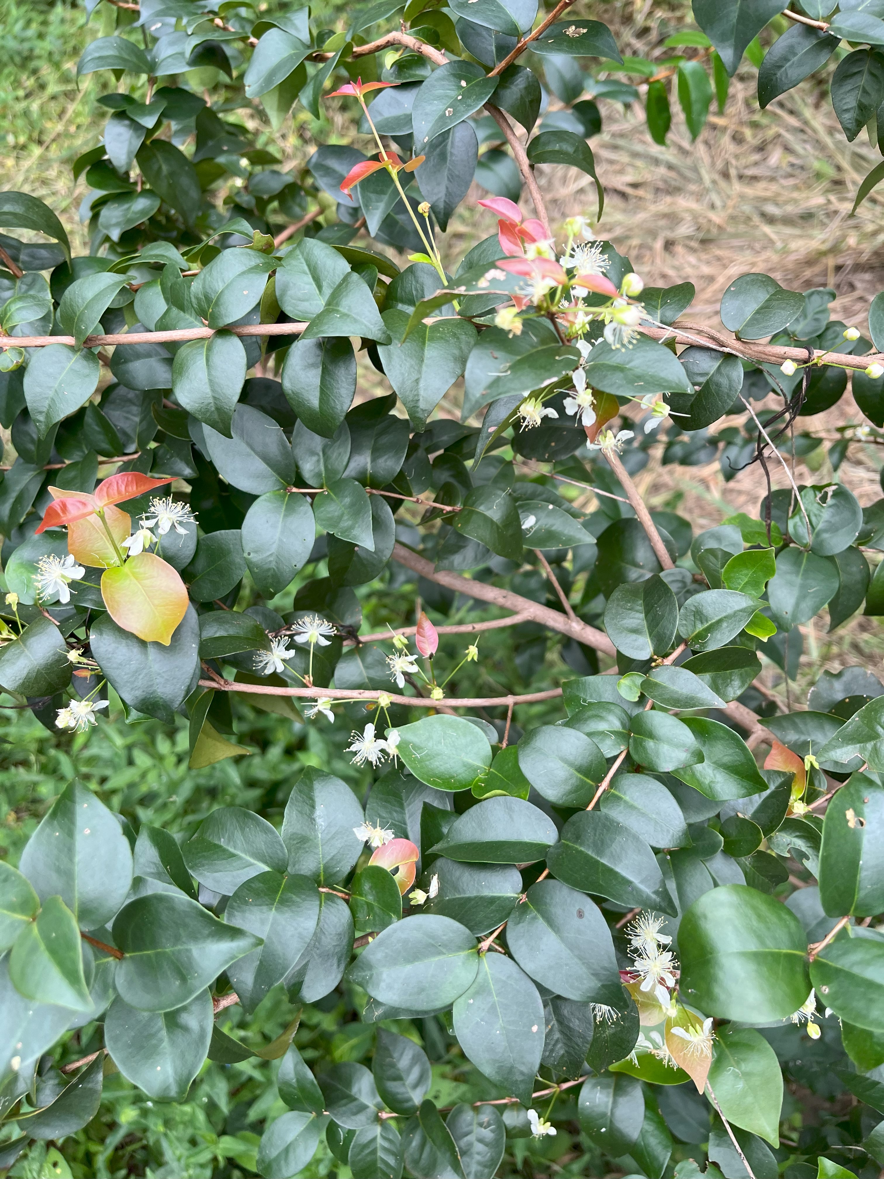 Surinam Cherry (Eugenia uniflora) Slow growing large shrub to 25 feet. Also called Brazilian cherry, Pitanga.
