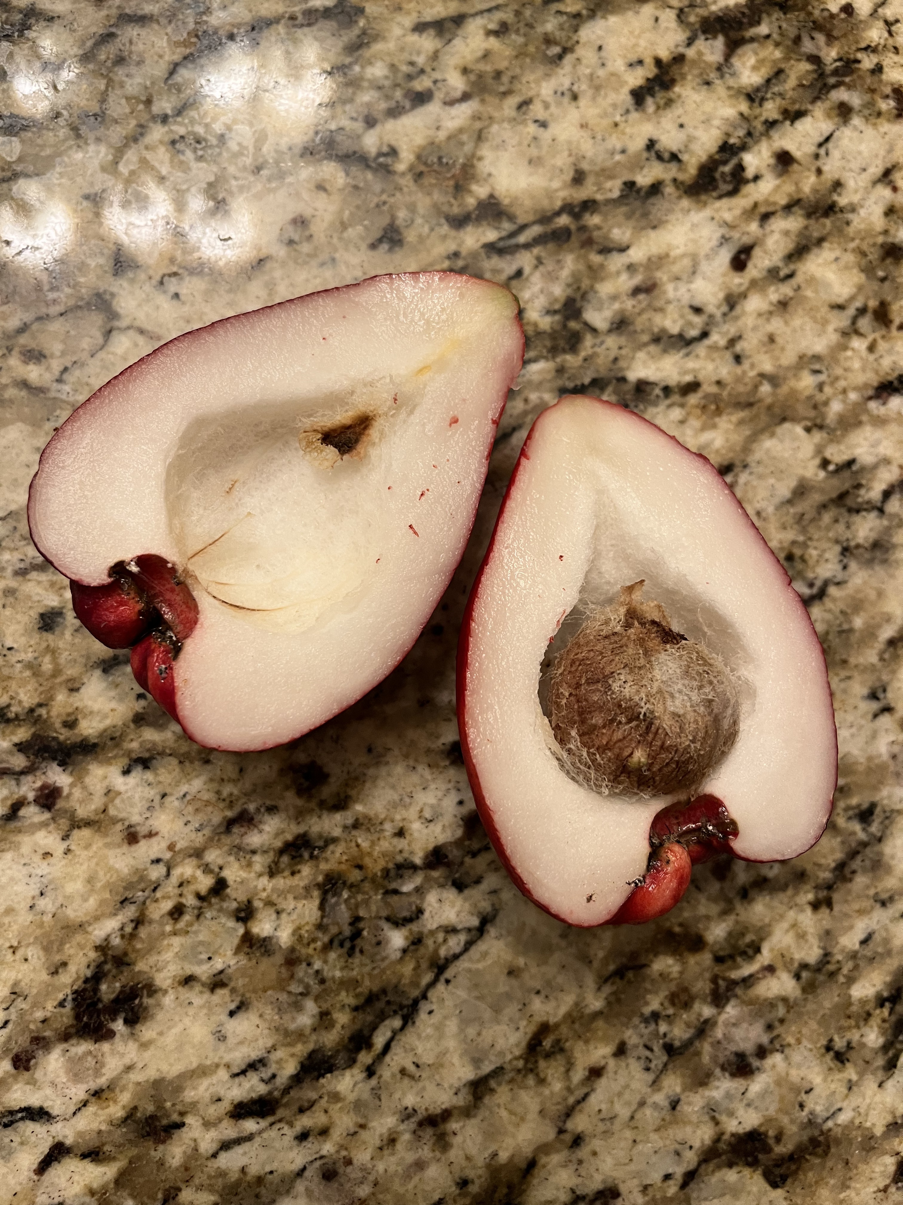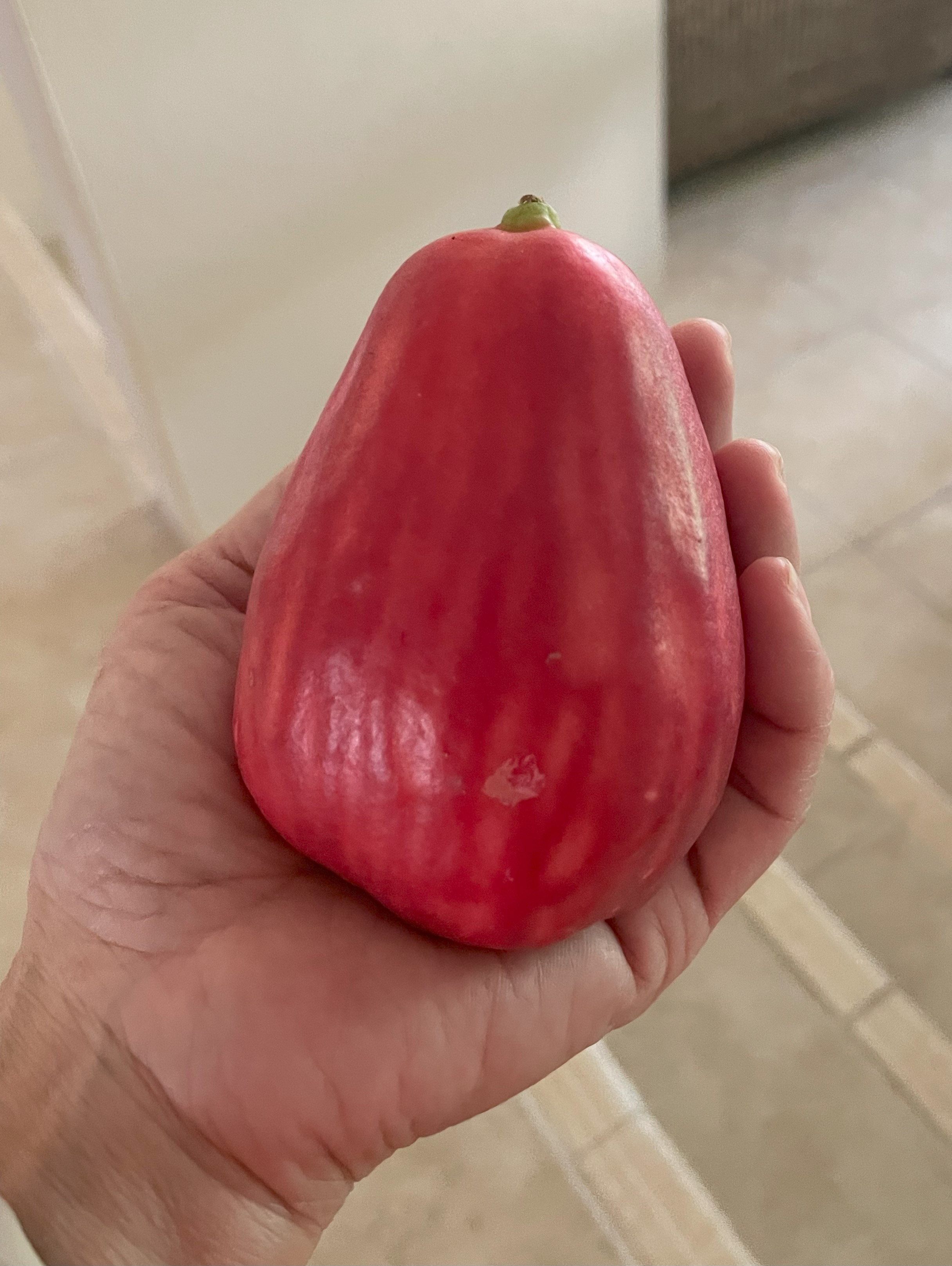 Wax Apple (Syzygium samarangense) Also called wax jamboo, Java apple, macopa. Grows to 40 feet. Fruits in 3-5 years from seed.