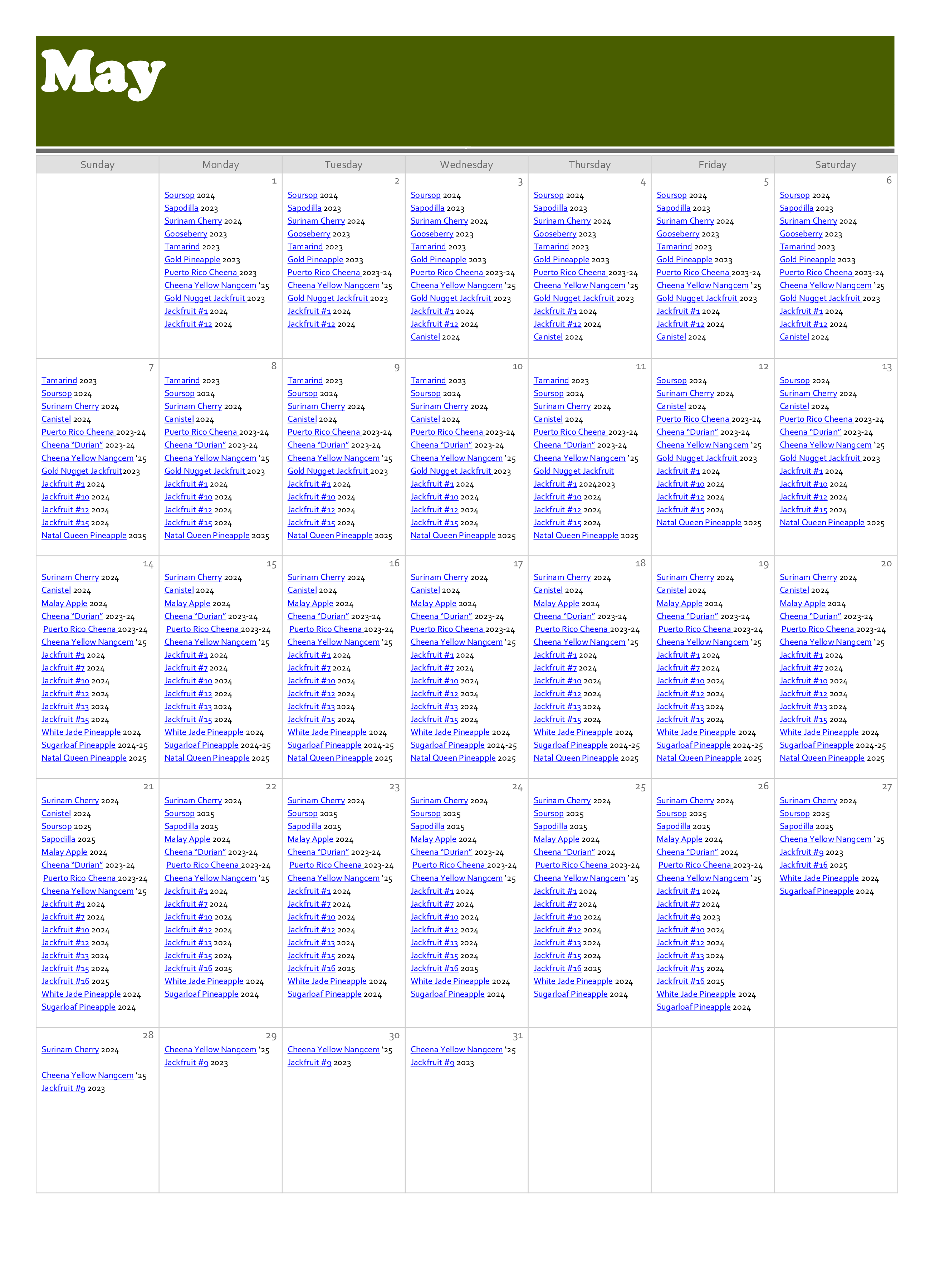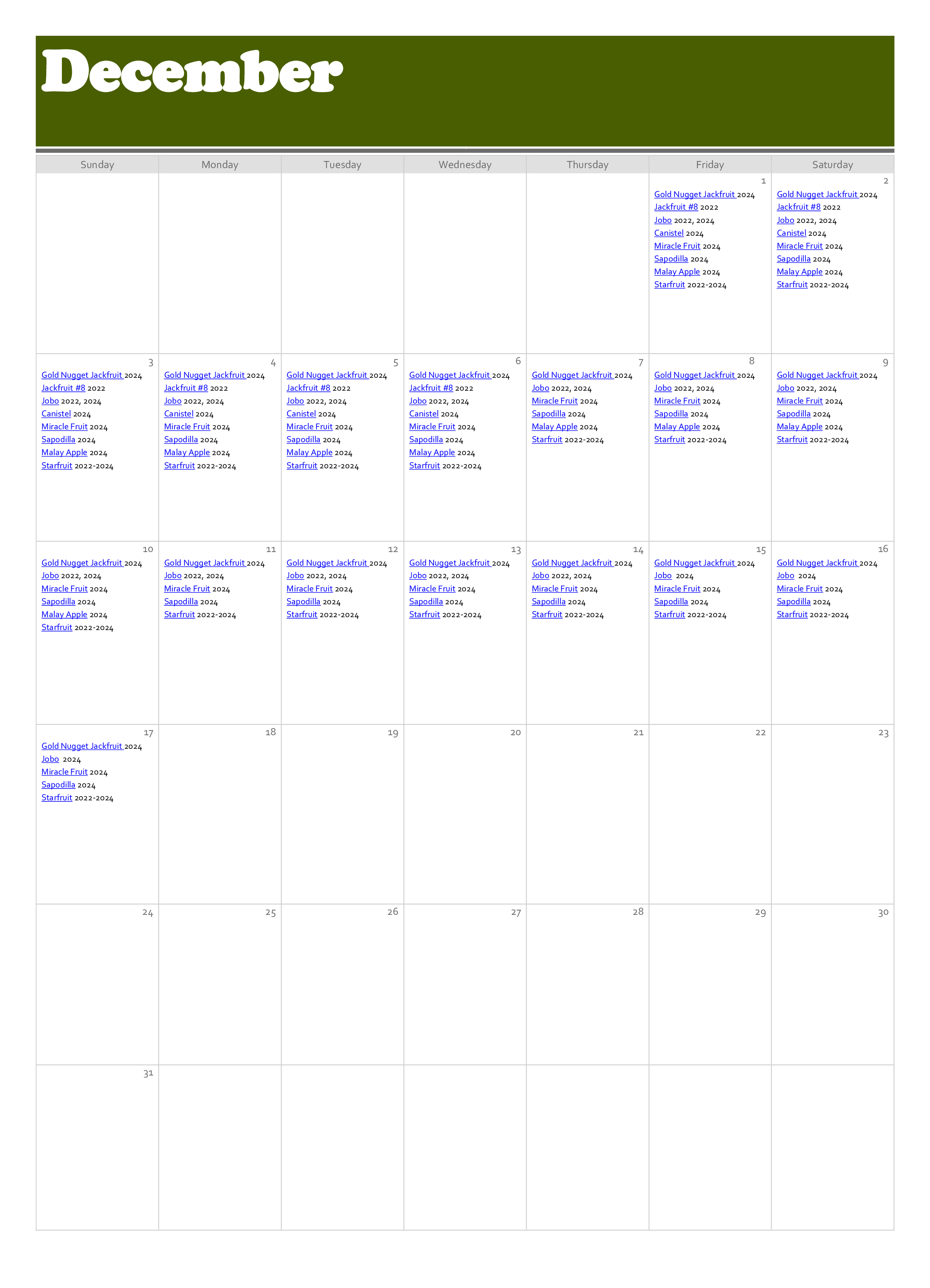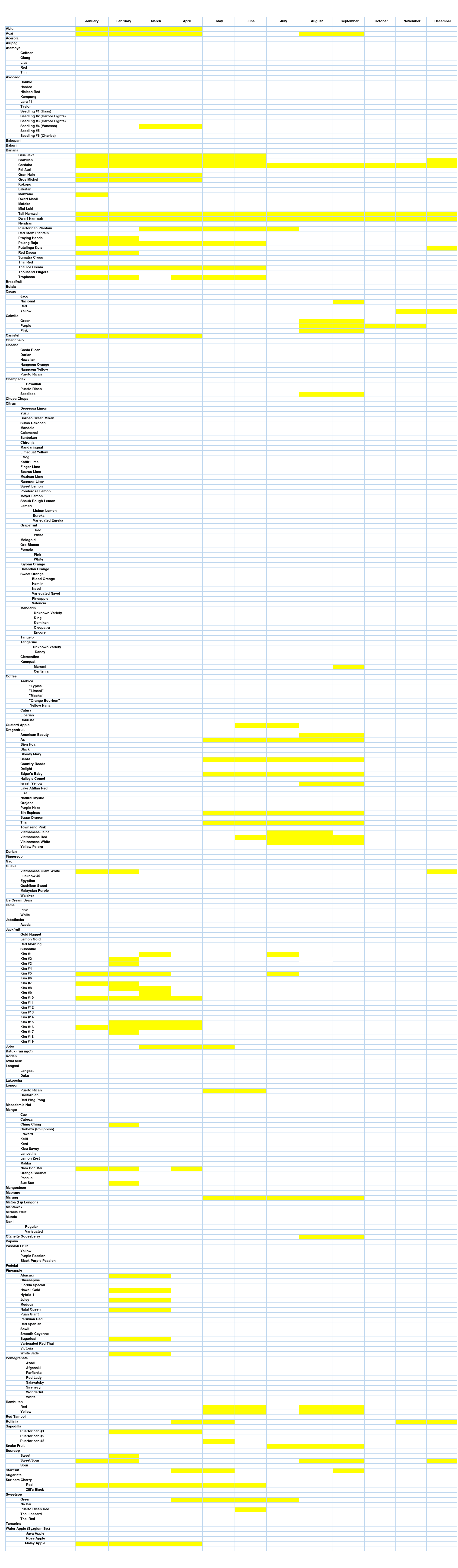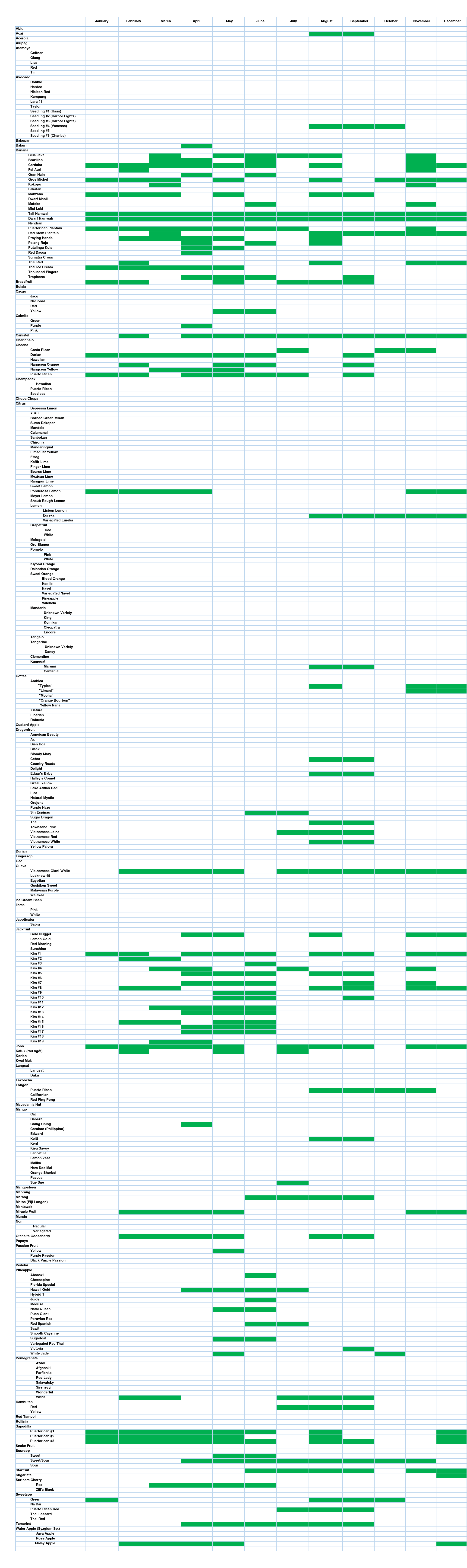 Fruiting January February March April May June July August September October November December Fruiting Flowering