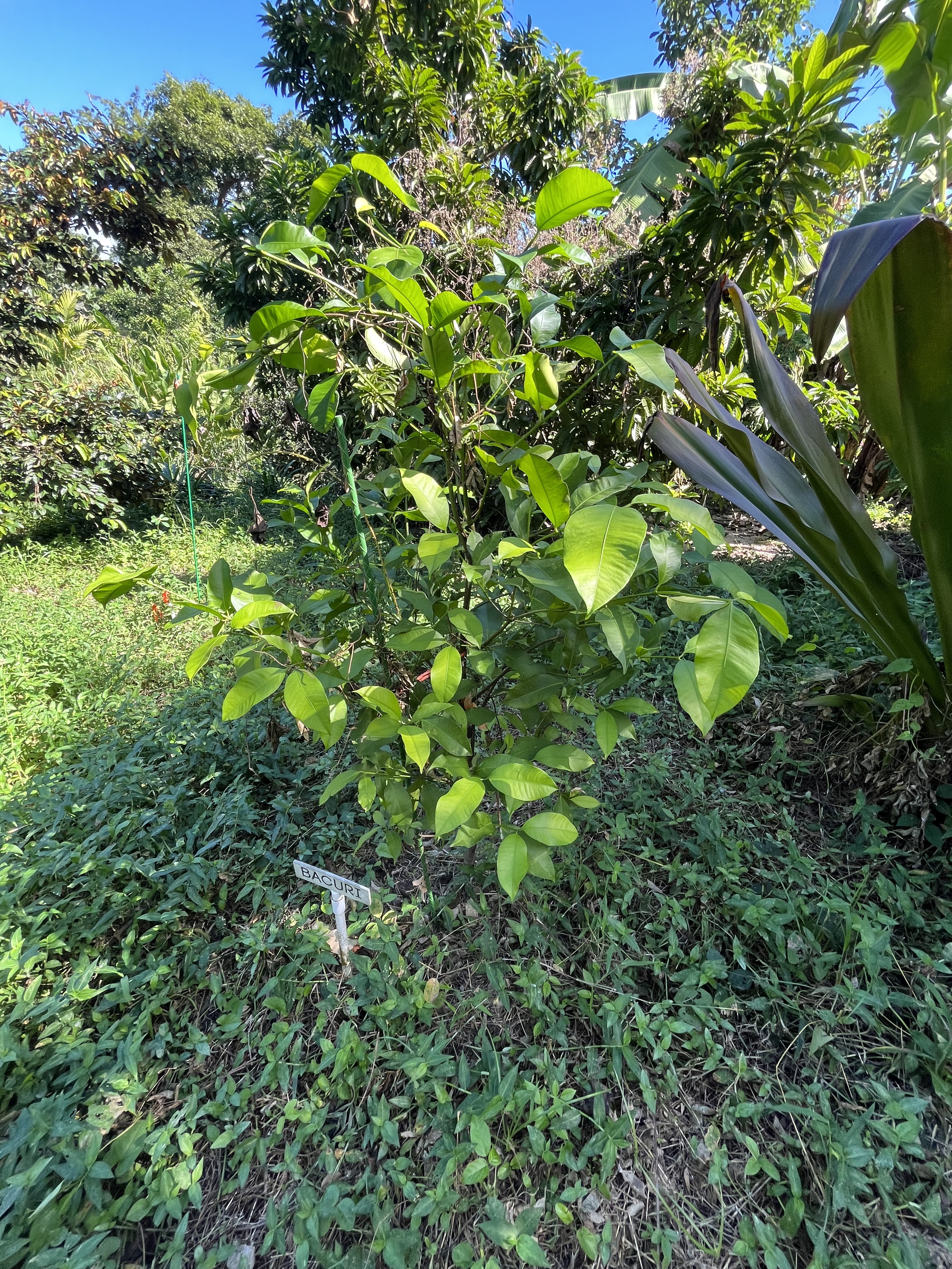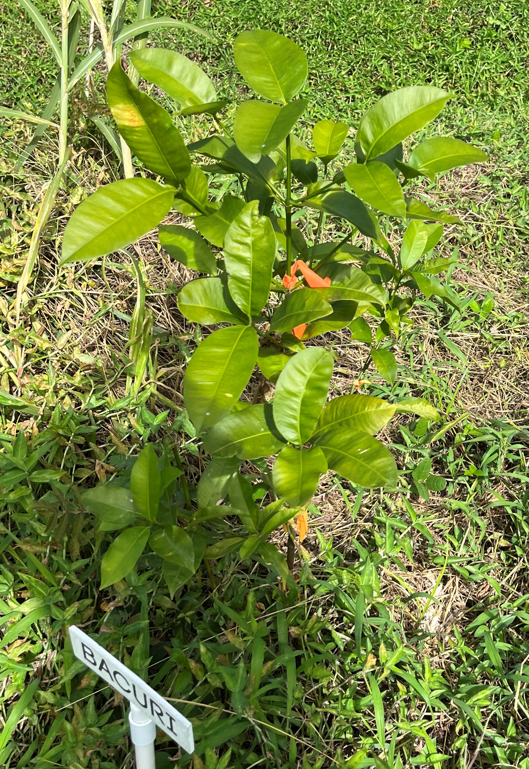 Bacuri (Garcinia Acuminata) Grows to 20-60 feet, prune to maintain at 10-15 feet. Full sun. Fruits in April.