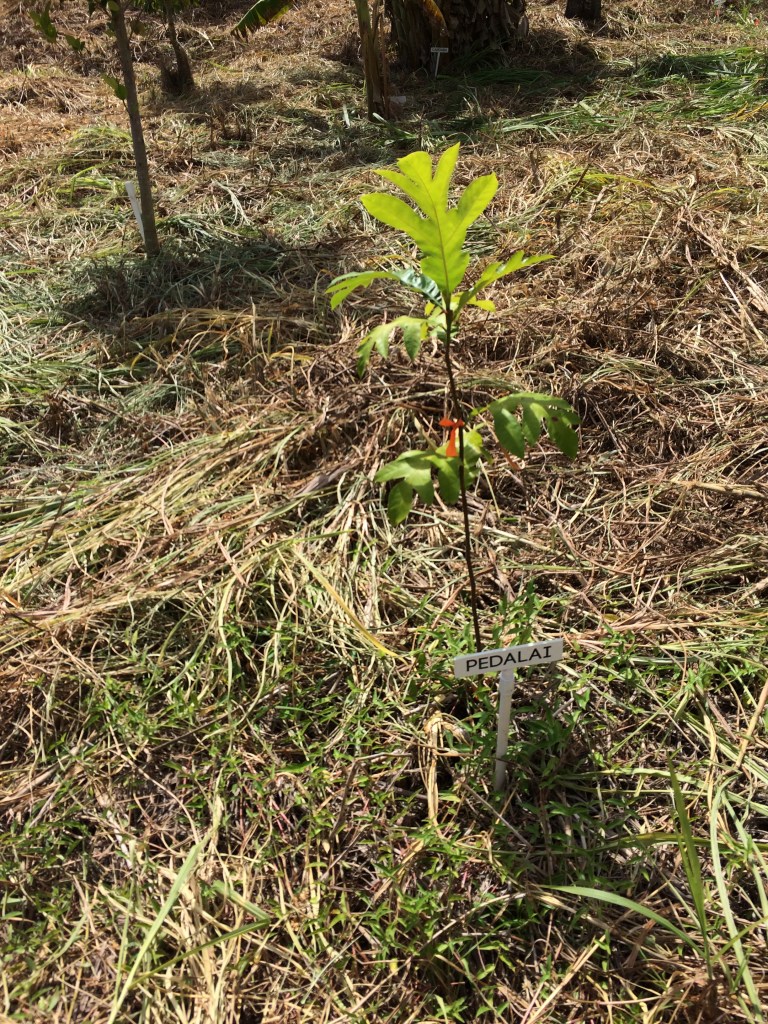 Pedalai (Artocarpus Sericarpus) Grows to 120 feet, prune to maintain at 10-15 feet. Slow growth until 1 foot tall, fast after that. Prefers part shade until 6 feet tall, full sun after that. Bears in 3-5 years from seed.