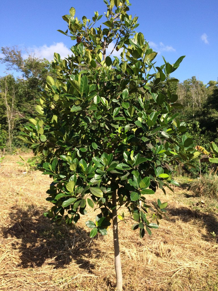 Kwai Muk (Artocarpus Hypargyraeus) Grows to 15-25 feet, can prune to maintain at 10 – 15 feet. slower growing than other artocarpus. Full sun. Bears in 6 years.