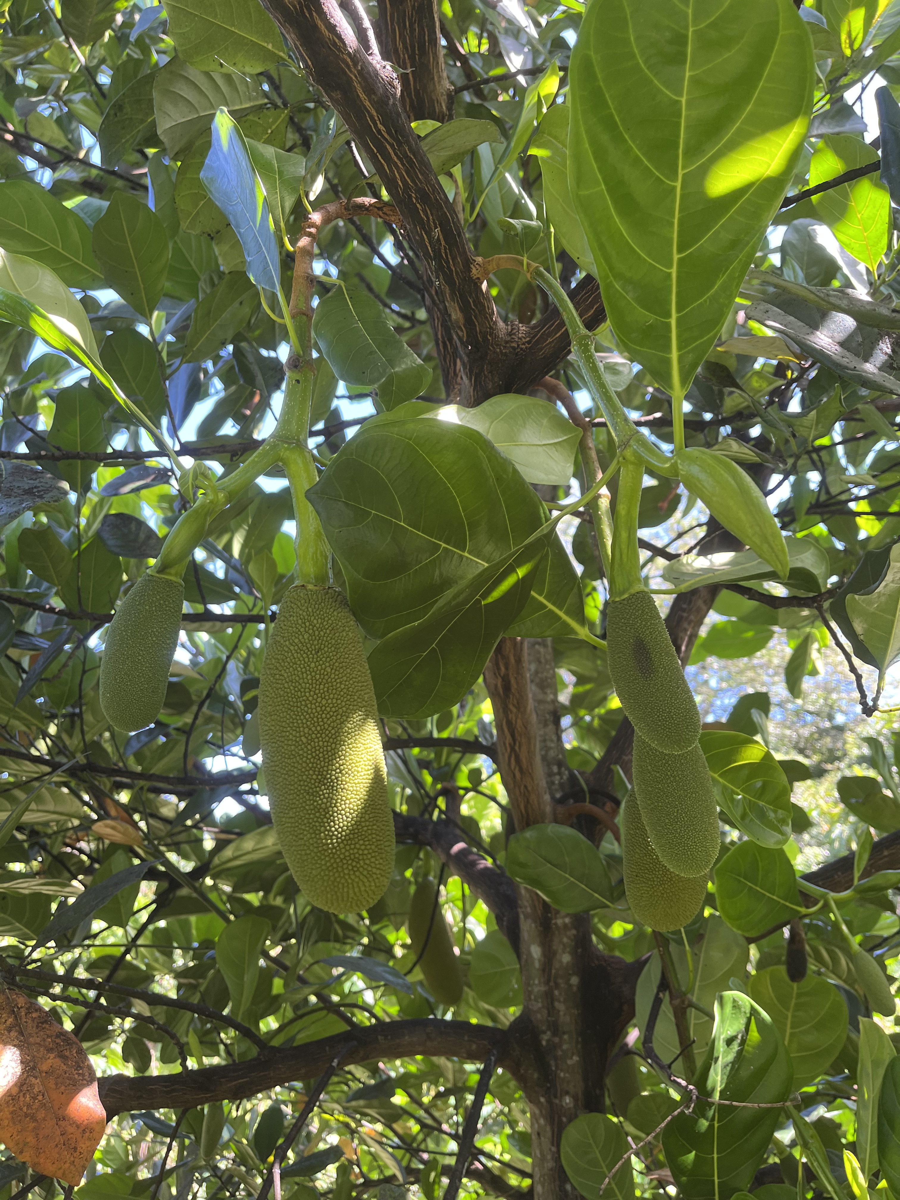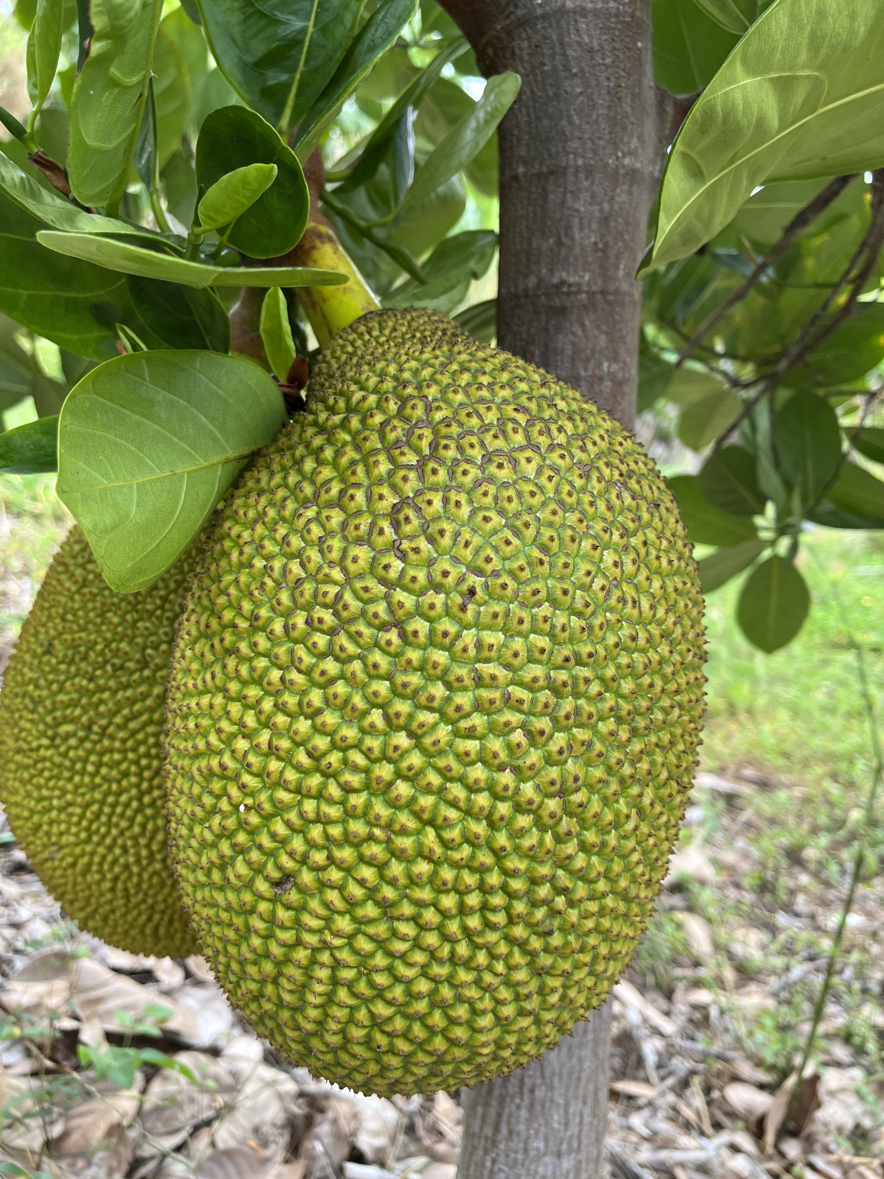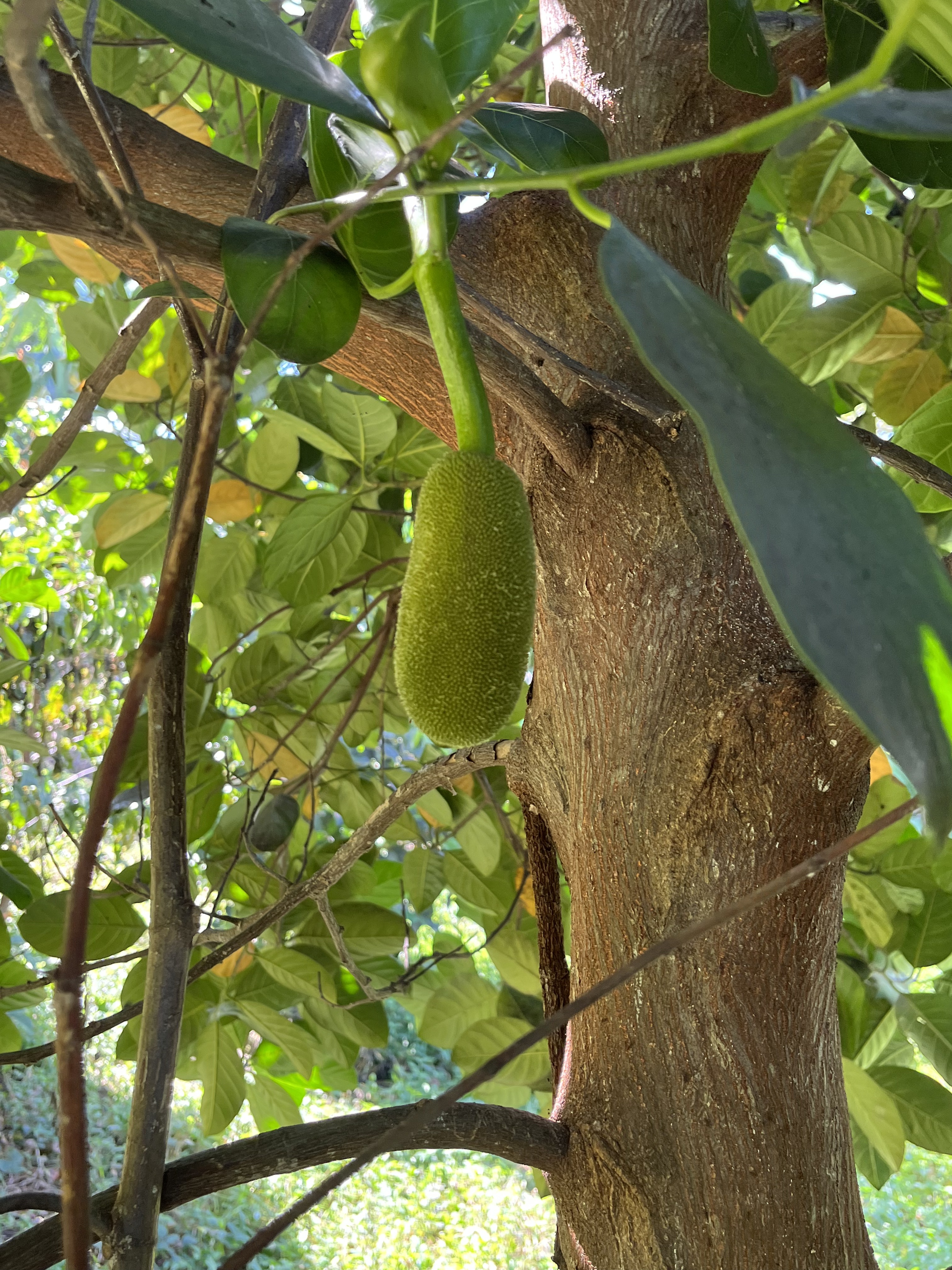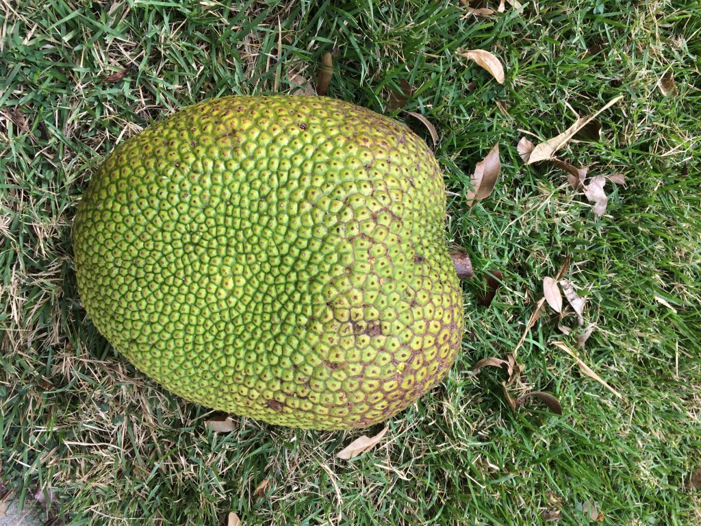 Jackfruit #19: Located in green space, near gooseberry. 25 lb fruits. Fruiting in February- March.