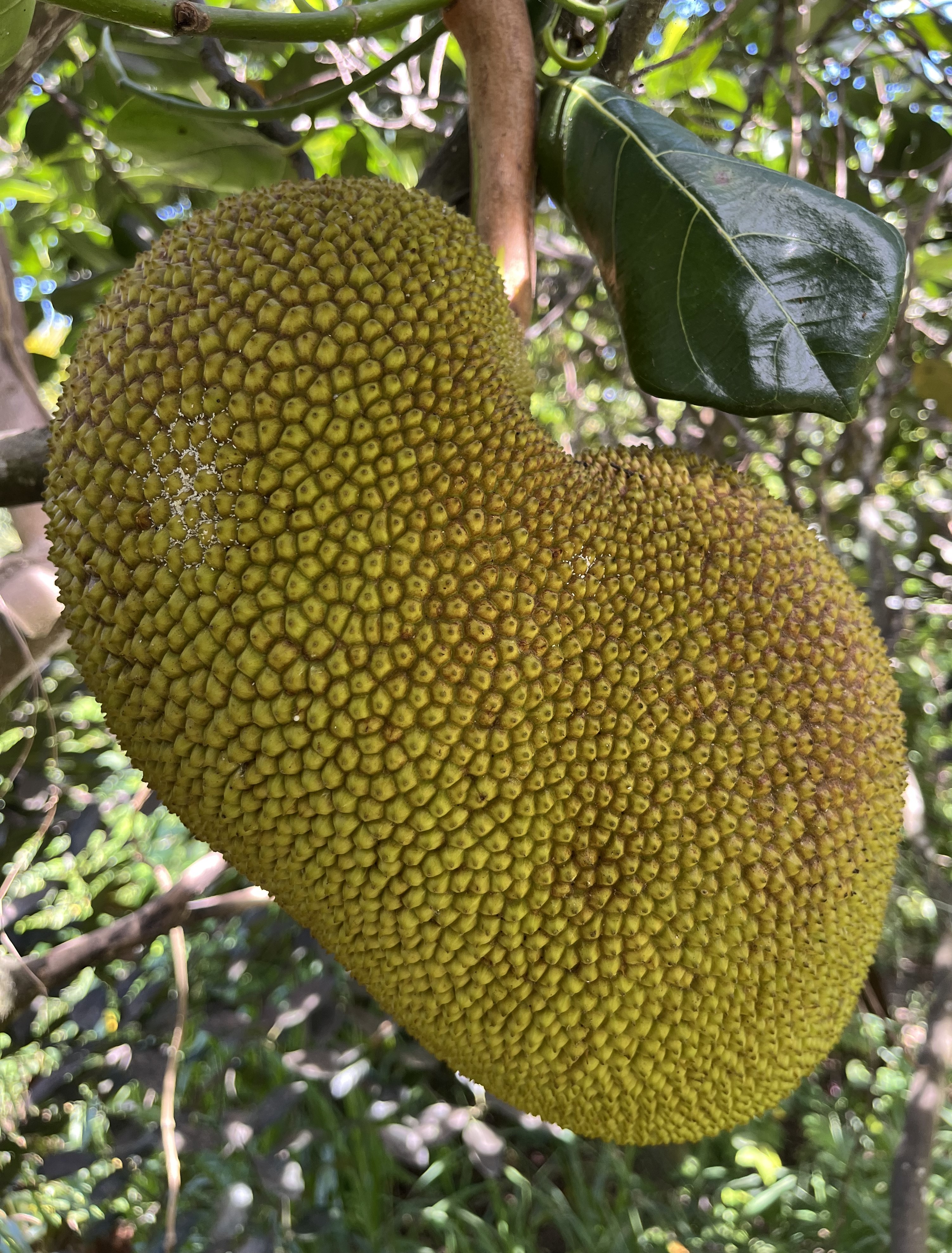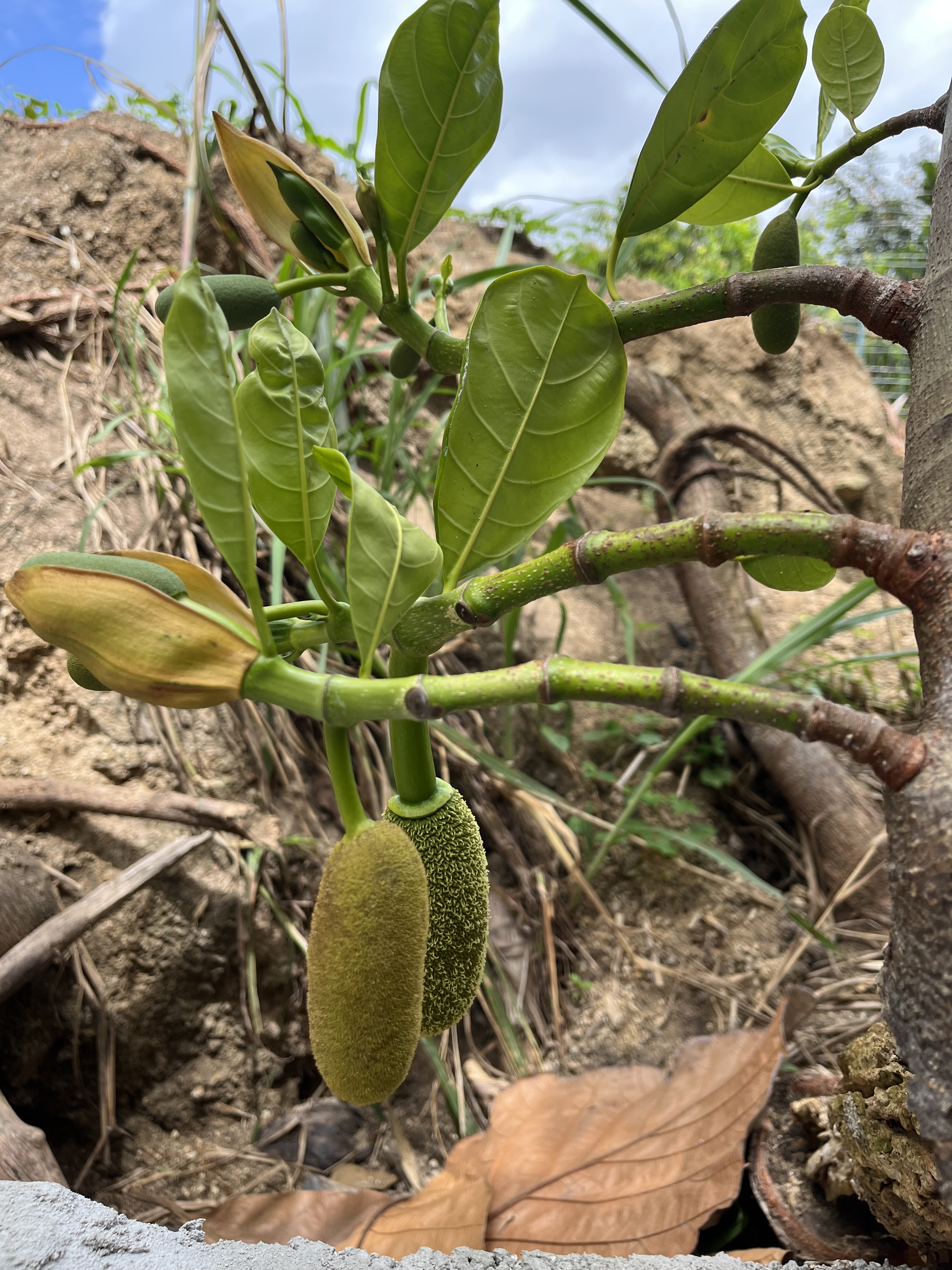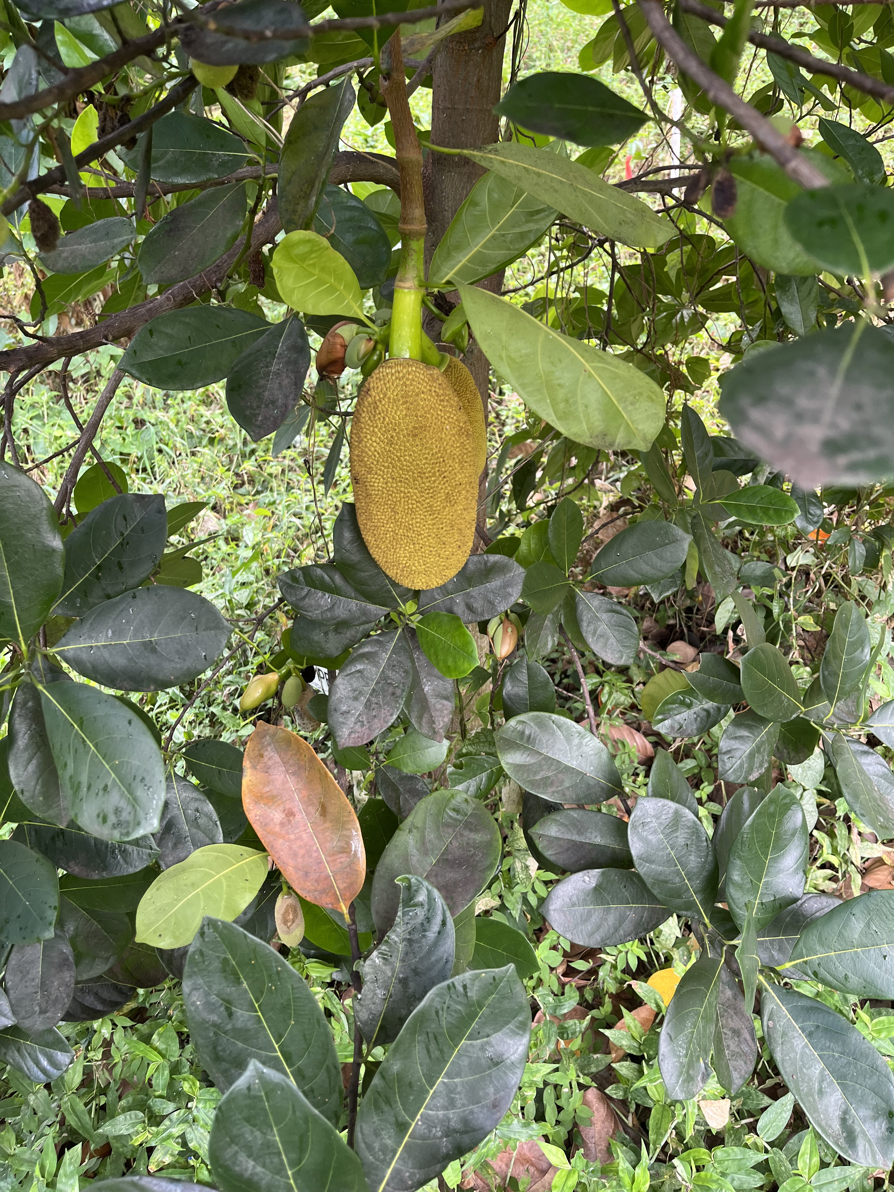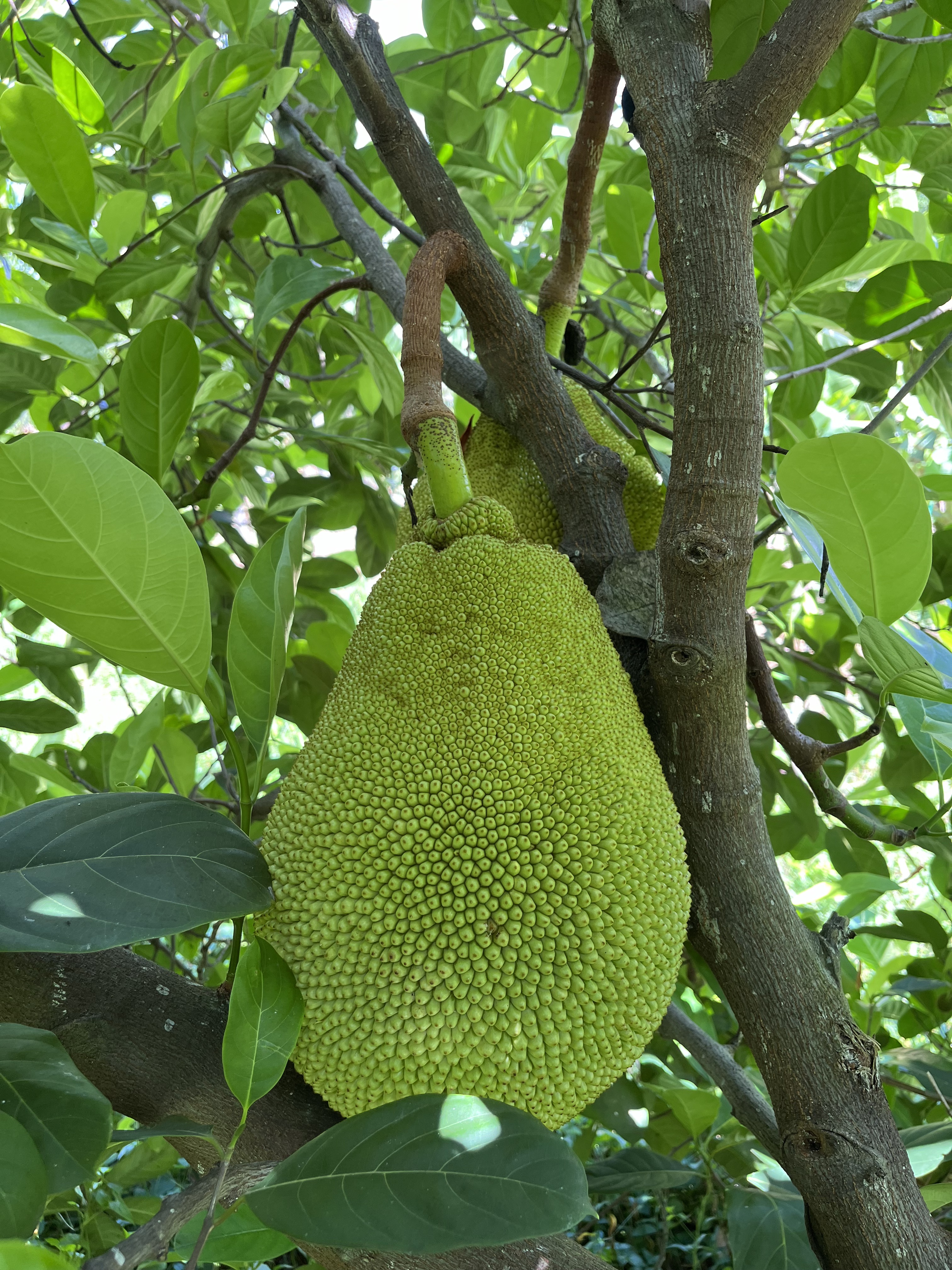 Jackfruit #19: Located in green space, near gooseberry. 25 lb fruits. Fruiting in February- March.