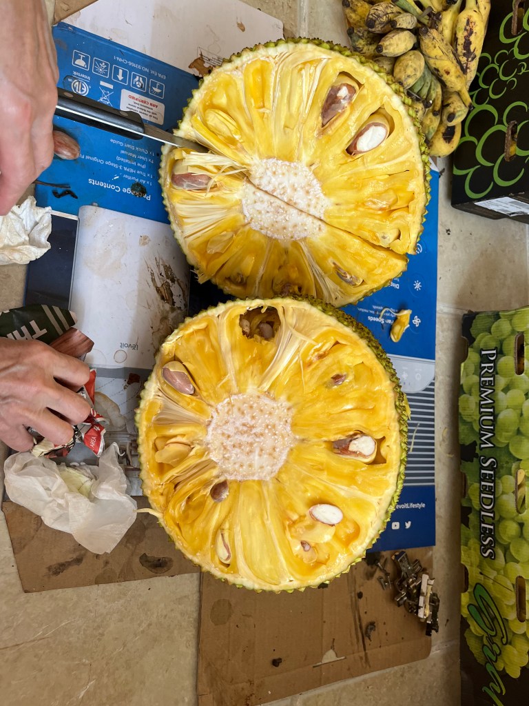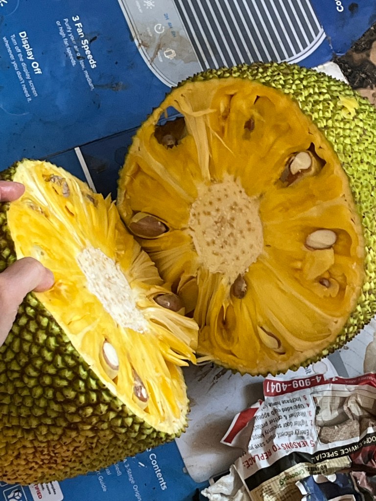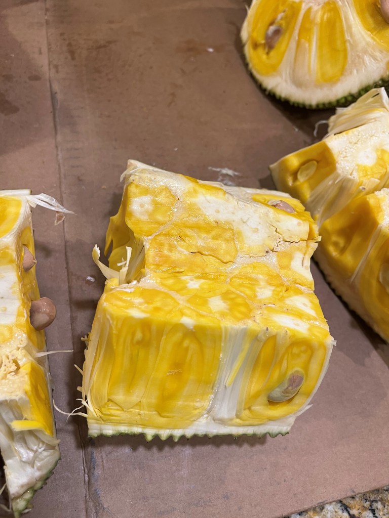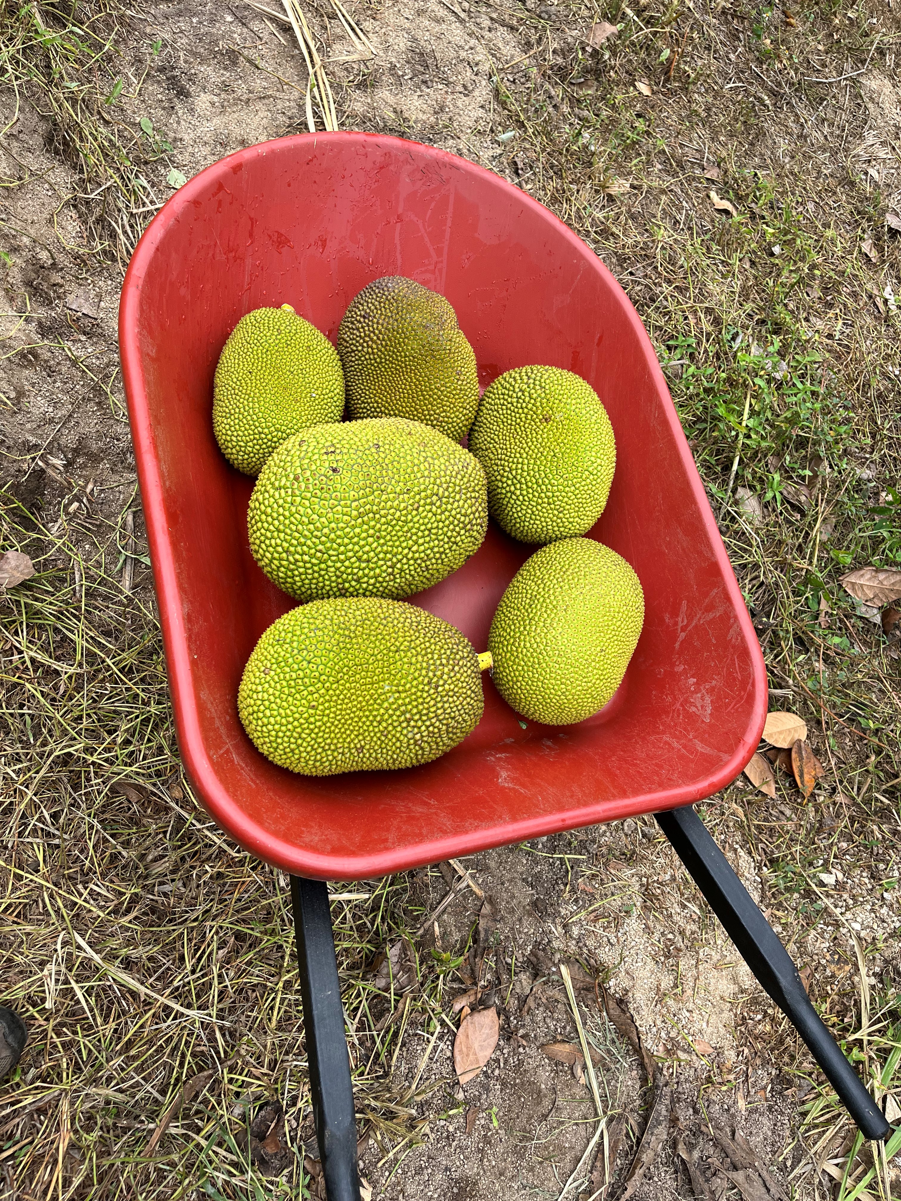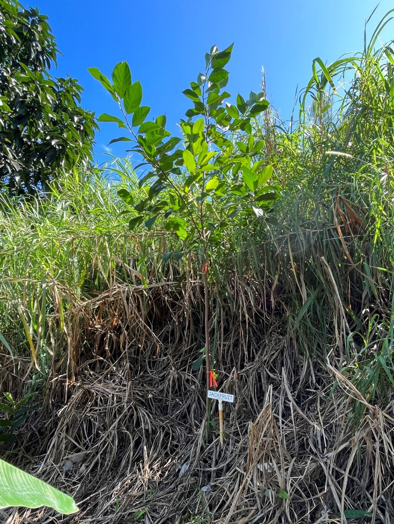 - Jackfruit #6: Sweet, Crisp fruits weigh about 20 Lbs. Ripens in August. Located on eastern side of lot one near the starfruit tree.