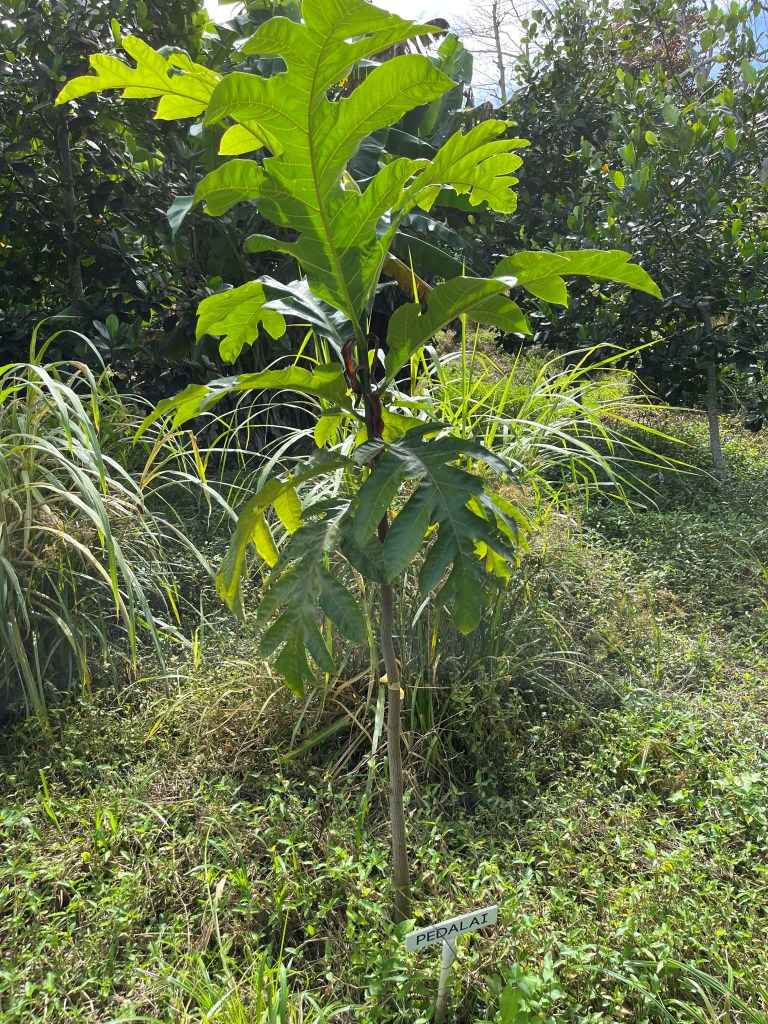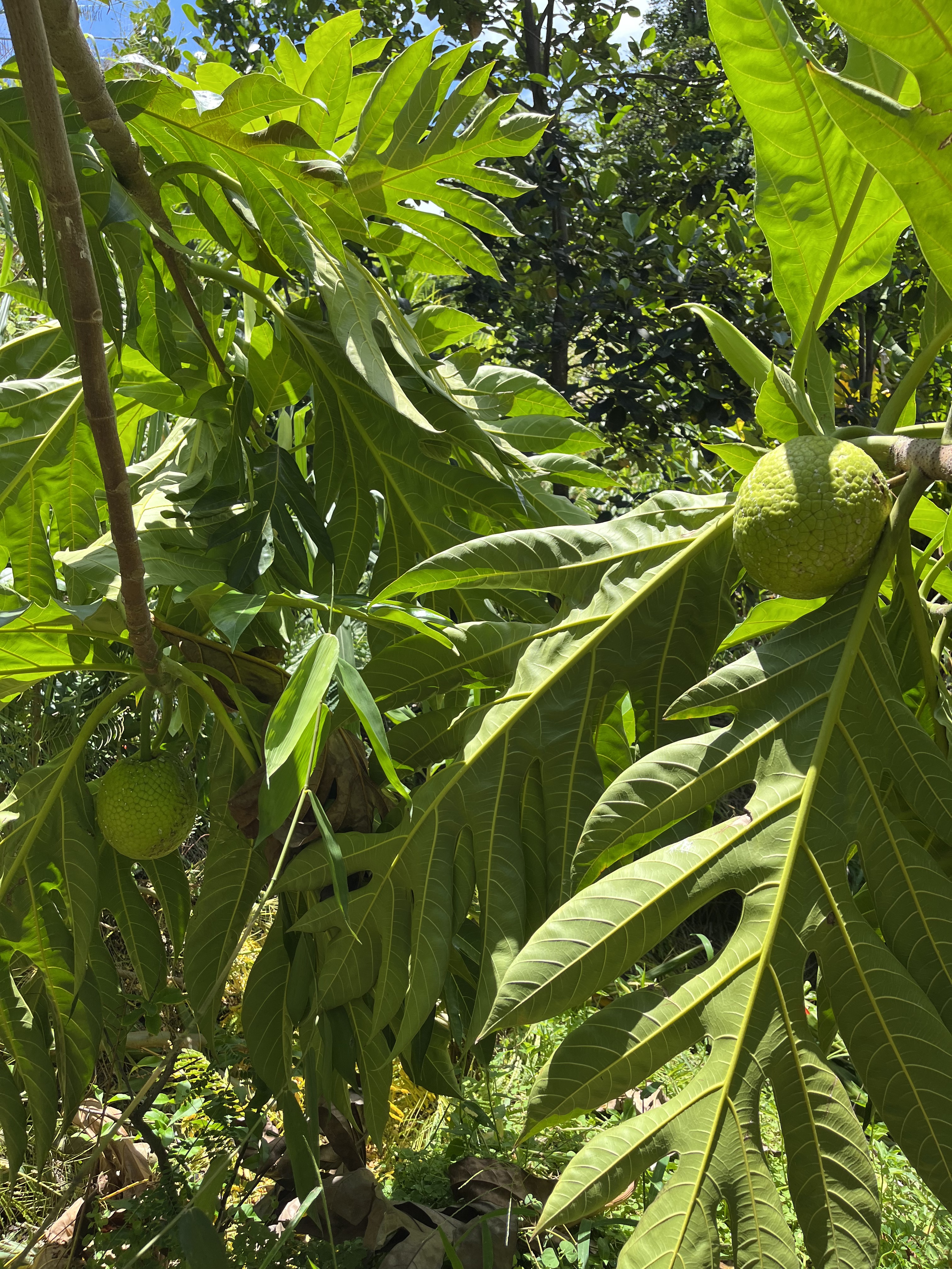 Breadfruit (Artocarpus Altilis) Grows to 80 feet, can be pruned to maintain at 10-15 feet. Fruits in 5-10 years. Seedless, propagated by root cuttings.