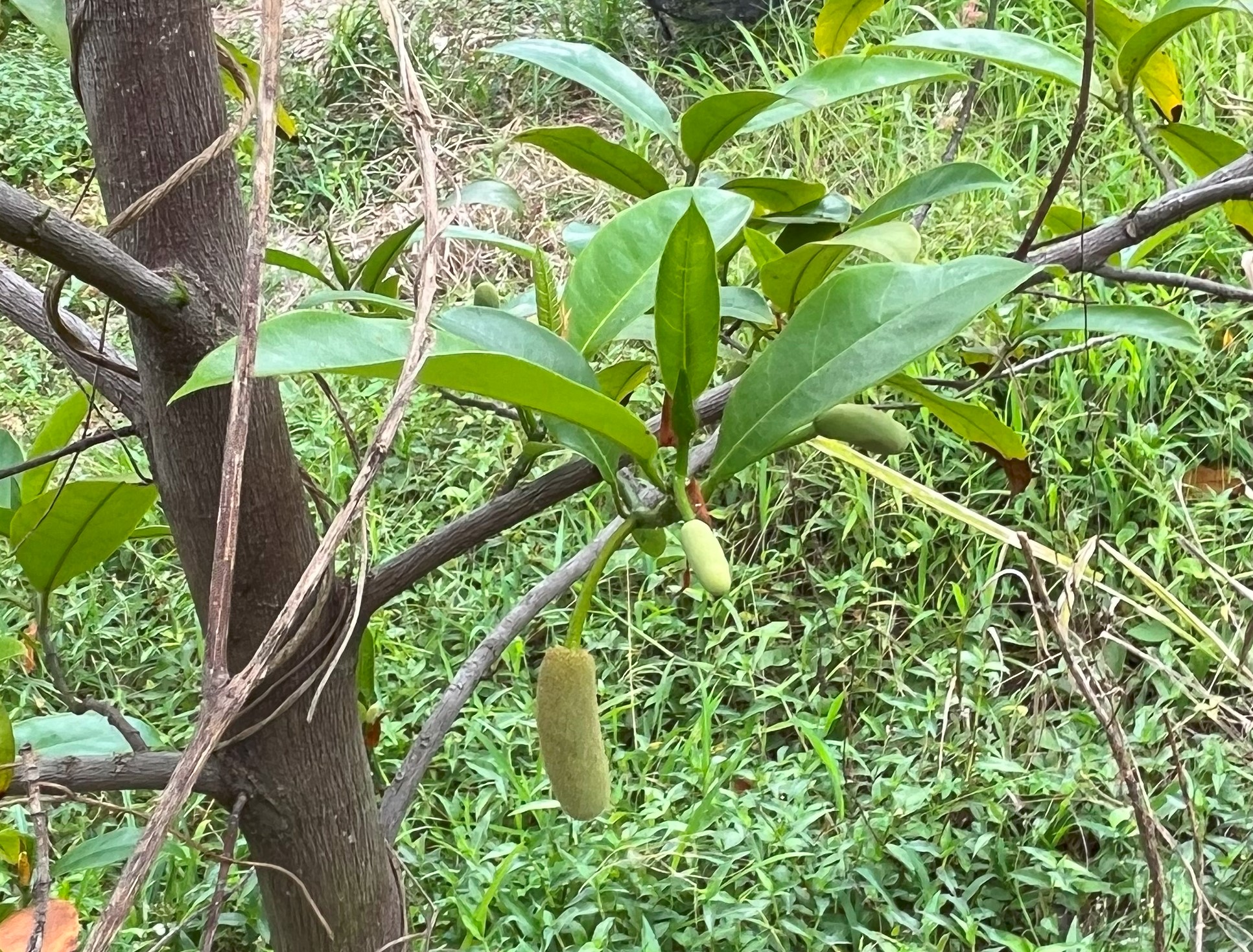 - Puertorican Cheena (#1): Fruit weighs about 15 lbs. Ripens May – September. (Located above the rambutan.)