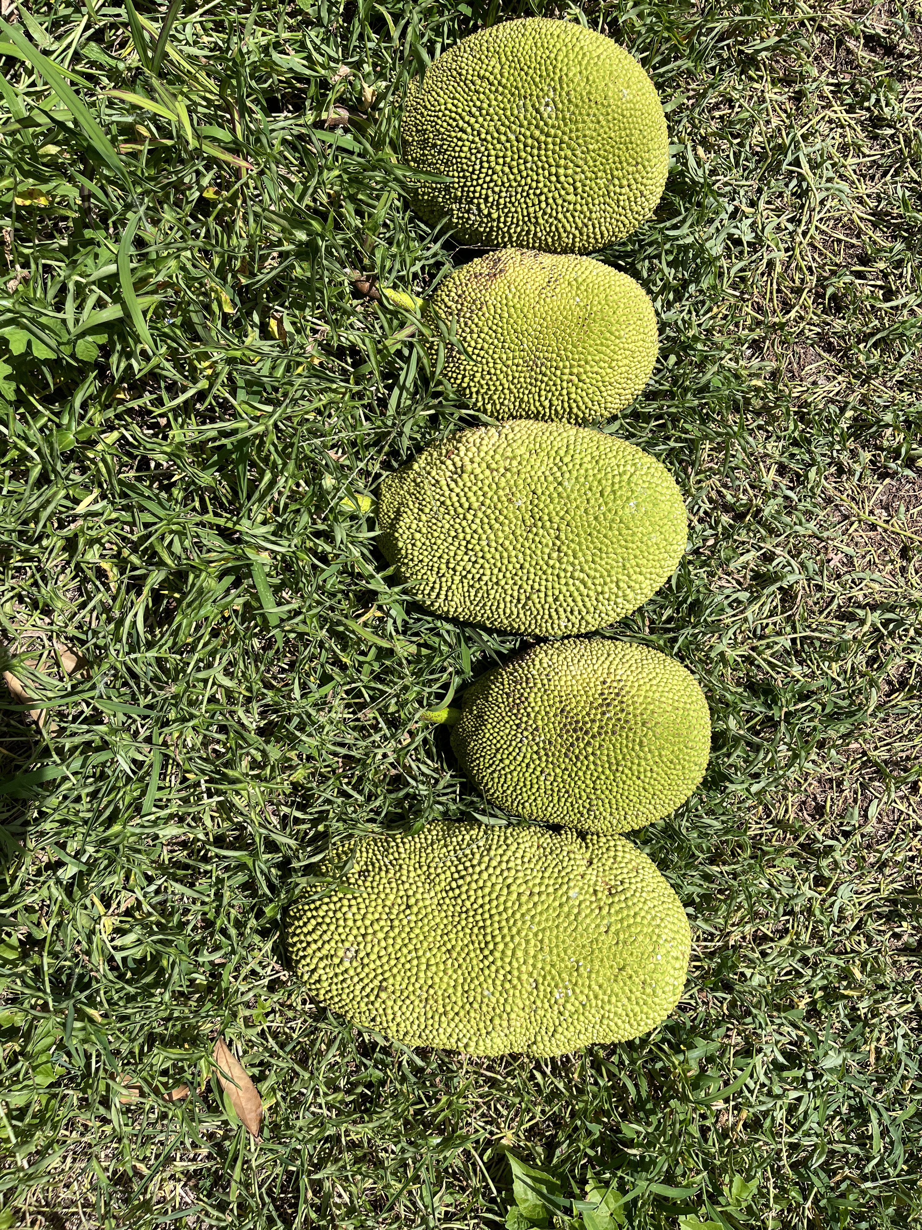 - Jackfruit #7: Located by the atemoya. Ripe in May/June, December/January. 15-25 lb fruits.